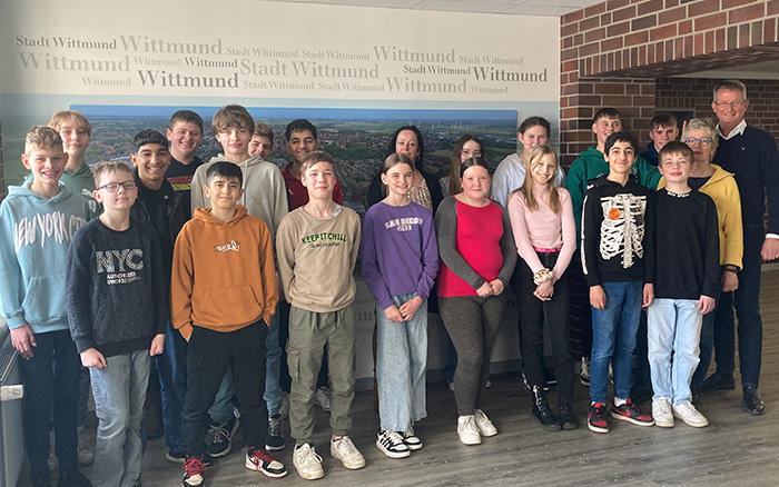 Am 14. April 2024 hat sich die H7b zum Rathaus aufgemacht. Der Bürgermeister Rolf Claußen hatte zur Teezeremonie eingeladen. Als das Ritual vollzogen war und alle eine Tasse Tee vor sich stehen haben, berichtete Claußen darüber, wie Kommunalpolitik in Wittmund funktioniert. Die Schüler/-innen stellten viele Fragen – und Herr Claußen hatte sichtlich Vergnügen dabei, sie zu beantworten.