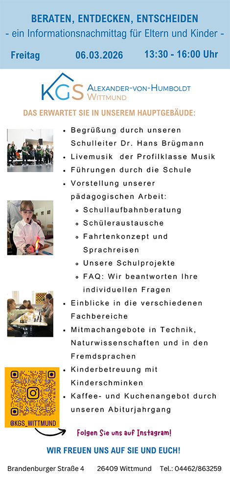 Wir laden alle Viertklässler*innen und deren Eltern und Erziehungsberechtigte ein zu unserem "Nachmittag der offenen Tür".